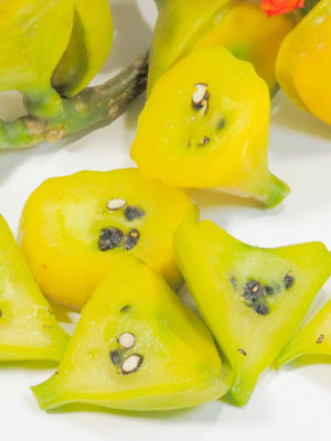 The growth rate of Yellow Fruited Rose Cactus will vary greatly depending on soil type, sunlight, temperature and other factors. A few leaves are often trimmed prior to shipping to reduce transpiration and travel stress.