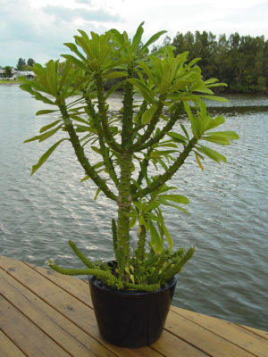 Before leaving, Euphorbia are inspected, watered, and pruned. Larger plants, generally those that ship in 8″ pots, will be topped to 36″ or 48″ overall, depending on the variety, if necessary, to facilitate shipping. Your new plants’ pot is then bagged to ensure that the soil stays in the pot and not loose in the box. Plants are tissue or kraft paper wrapped and generally secured in place with natural biodegradable peanuts.