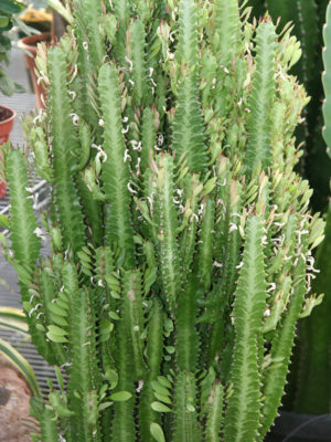 Before leaving, Euphorbia are inspected, watered, and pruned. Larger plants, generally those that ship in 8″ pots, will be topped to 36″ or 48″ overall, depending on the variety, if necessary, to facilitate shipping. Your new plants’ pot is then bagged to ensure that the soil stays in the pot and not loose in the box. Plants are tissue or kraft paper wrapped and generally secured in place with natural biodegradable peanuts.
