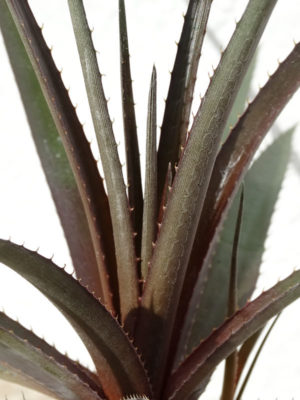 Before leaving, Dyckia are inspected, watered, and pruned. Larger plants, generally those that ship in 8″ pots, will be topped to 36″ or 48″ overall, depending on the variety, if necessary, to facilitate shipping. Your new plants’ pot is then bagged to ensure that the soil stays in the pot and not loose in the box. Plants are tissue or kraft paper wrapped and generally secured in place with natural biodegradable peanuts.