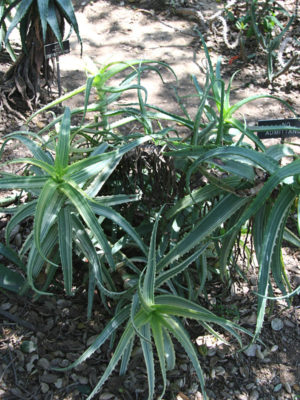 AKA Striped African Torch Aloe – Long arching rosette, forming thick, large leaves of Arborescens grow slightly recurved at the ends and sport a variegated strip pattern. Perfectly suited for use as a “Living fence” it multiplies fast and planted in multiples will fill in the empty spots pronto. Large colorful flower spikes pop up in profusion during the spring to summer sporting tubular flowers in the deepest of orange to red coloration. As with all the aloe, the flowers produce nectar and are attractive to many kinds of birds and bees. This Aloe brings a spectacular lively feel to any garden environment.