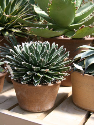 Before leaving, Agave are inspected, watered, and pruned. Larger plants, generally those that ship in 8″ pots, will be topped to 36″ or 48″ overall, depending on the variety, if necessary, to facilitate shipping. Your new plants’ pot is then bagged to ensure that the soil stays in the pot and not loose in the box. Plants are tissue or kraft paper wrapped and generally secured in place with natural biodegradable peanuts.
