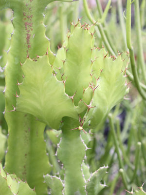 Before leaving, Euphorbia are inspected, watered, and pruned. Larger plants, generally those that ship in 8″ pots, will be topped to 36″ or 48″ overall, depending on the variety, if necessary, to facilitate shipping. Your new plants’ pot is then bagged to ensure that the soil stays in the pot and not loose in the box. Plants are tissue or kraft paper wrapped and generally secured in place with natural biodegradable peanuts.